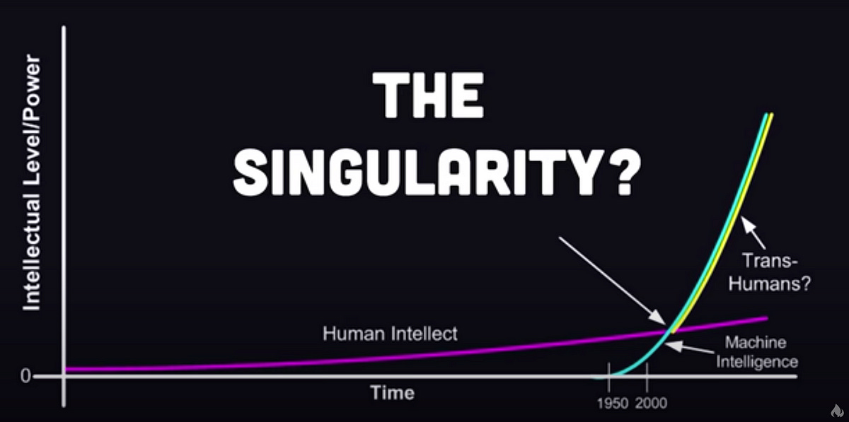 As raízes intelectuais da Singularidade remontam a John von Neumann, um pioneiro cientista da computação que, na década de 1950, discutiu sobre como "o progresso tecnológico sempre acelerado" resultaria em "alguma singularidade essencial na história da raça". A evolução biológica vai continuar, mas a evolução tecnológica está se movendo um milhão de vezes mais depressa do que a outra. Portanto, não demorará para que a porção não-biológica de nossa inteligência venha a predominar.